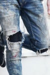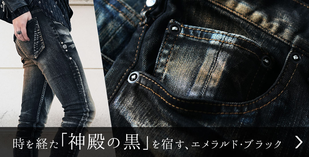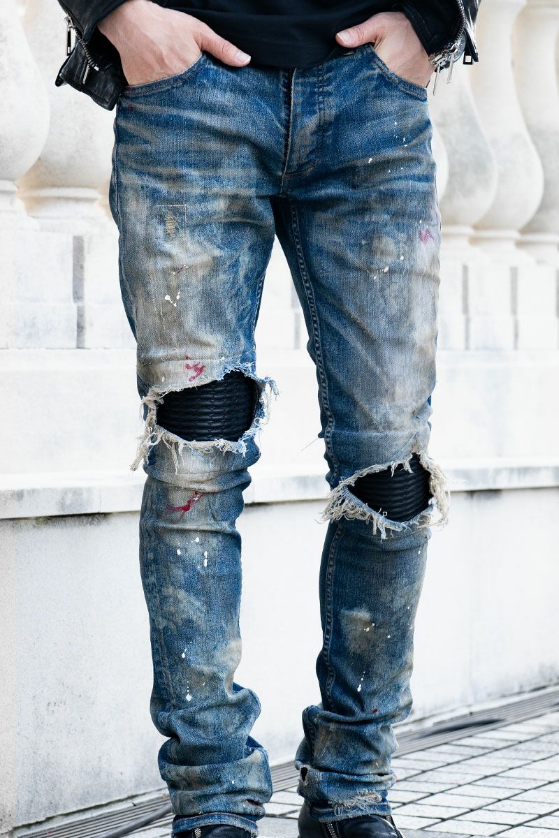 【FAGASSENT】“デニムの聖地” 岡山西部の上流水のみで染め上げたデニムに「熟練職人のダメージ加工」と「世界初の刺繍蛇腹」を融合させた、柔らかな、特注ストレッチブルーデニム『 RANBU Biker custom / 乱舞バイカーカスタム 』 英国LONDON×岡山アルチザンデニム