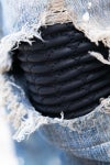 世界初の「刺繍蛇腹」を、柔らかな、特注ストレッチデニムに合わせた岡山製デストロイ・ブルーデニム