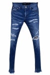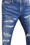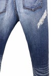 スペイン語でダイヤモンドを意味する「ディアマンテ(DIAMANTE)」という名の通り、ウォッシュ加工によるグラデーションと、クラッシュ部分にネイビーデニムを合わせたコントラストを組み合わせることで、1本のブルーデニムの中に、複雑な立体感が見える作品として作り上げました。