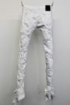 そして、裾に取り付けられた、特殊な「横糸飛ばしのホワイトデニムジャガード」のコントラストが、美しくも最強の印象を奏でるクラッシュスキニーとなっています。