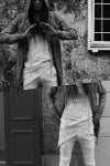 こちらのFAGASSENTのパンツは、あえて長く裾をデザインしており、ブーツやスニーカーの上に、たるみを作って履くことで、足が長くスタイリッシュに見えるようにデザイナーが設計しております。(裾上げを行っておりません)