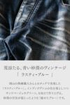 【FAGASSENT】青い砂漠のヴィンテージ 『 RUSTY VEIL BLUE / ラスティヴェール・ブルー 』 夜が始まる砂漠の青を、海外の一流バイヤーも注目する“柔らかい”特注ハイブリッド・ストレッチデニムの上に描く 日本・岡山の自社ファクトリー製 英国London×岡山産アルチザンデニムパンツ