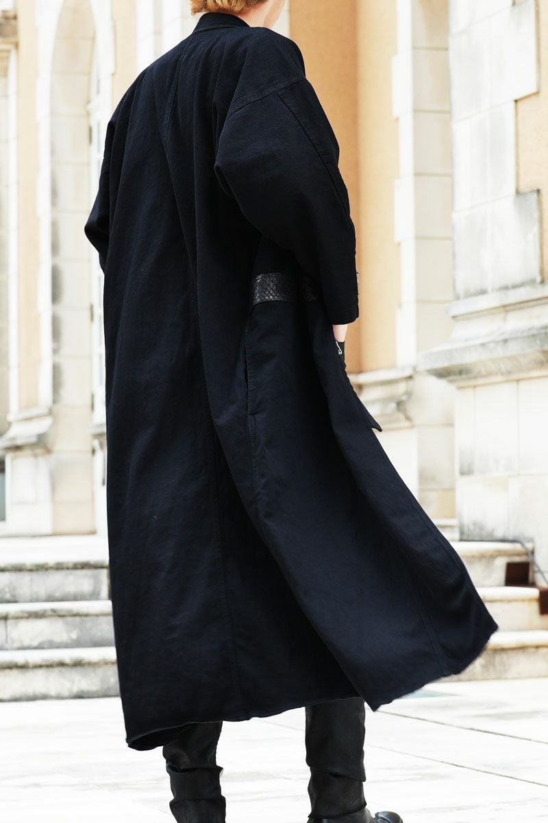 【FAGASSENT】風を纏うブラック・エレガンス 『 RAVEN / レイヴン 』 軽やかに風を纏い・風になびかせるためのロング丈 UK-Haori Aシルエットと鋭いスキニーデニムとで奏でるコントラスト 英国LONDON×岡山アルチザンデニム