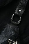FAGASSENT特注の刺繍デニムを、最高級皮革オーストリッチレザーと融合させたブラックデニムとなります。