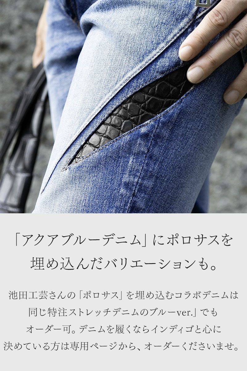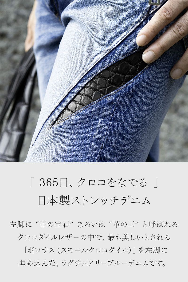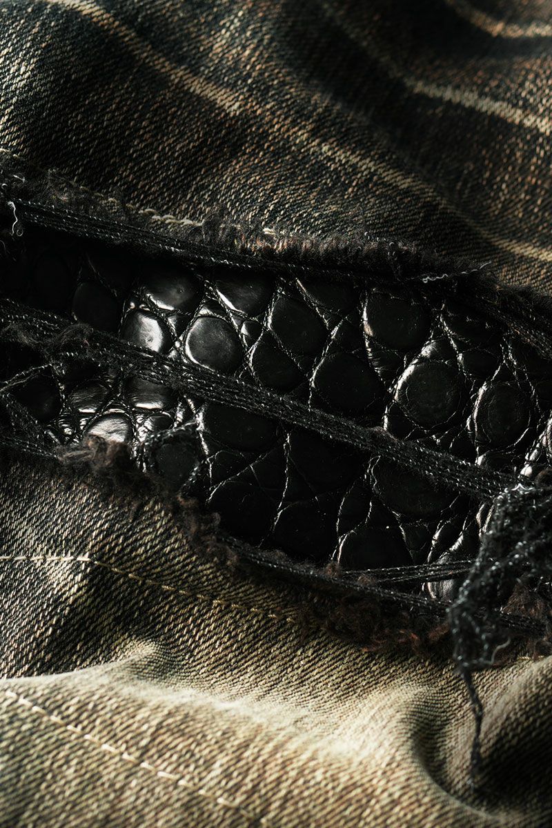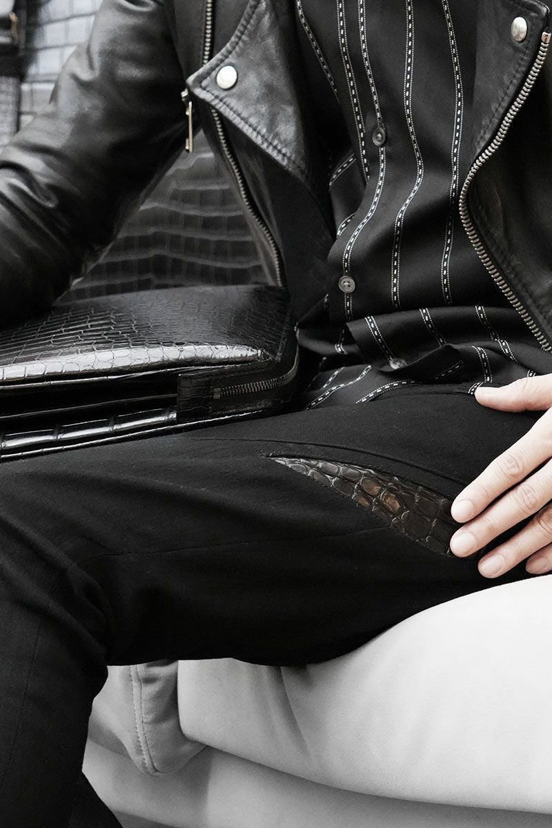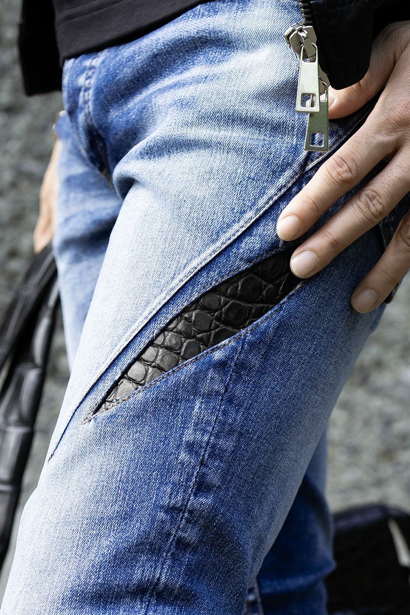 プロ御用達の岡山産ストレッチデニムパンツに、「革の王」や「革の宝石」と呼ばれるクロコダイルレザーを組み込んだ作品をご紹介します。創業80年のクロコダイル工房「池田工芸」様とのコラボレーションパンツもこちらでご紹介します。