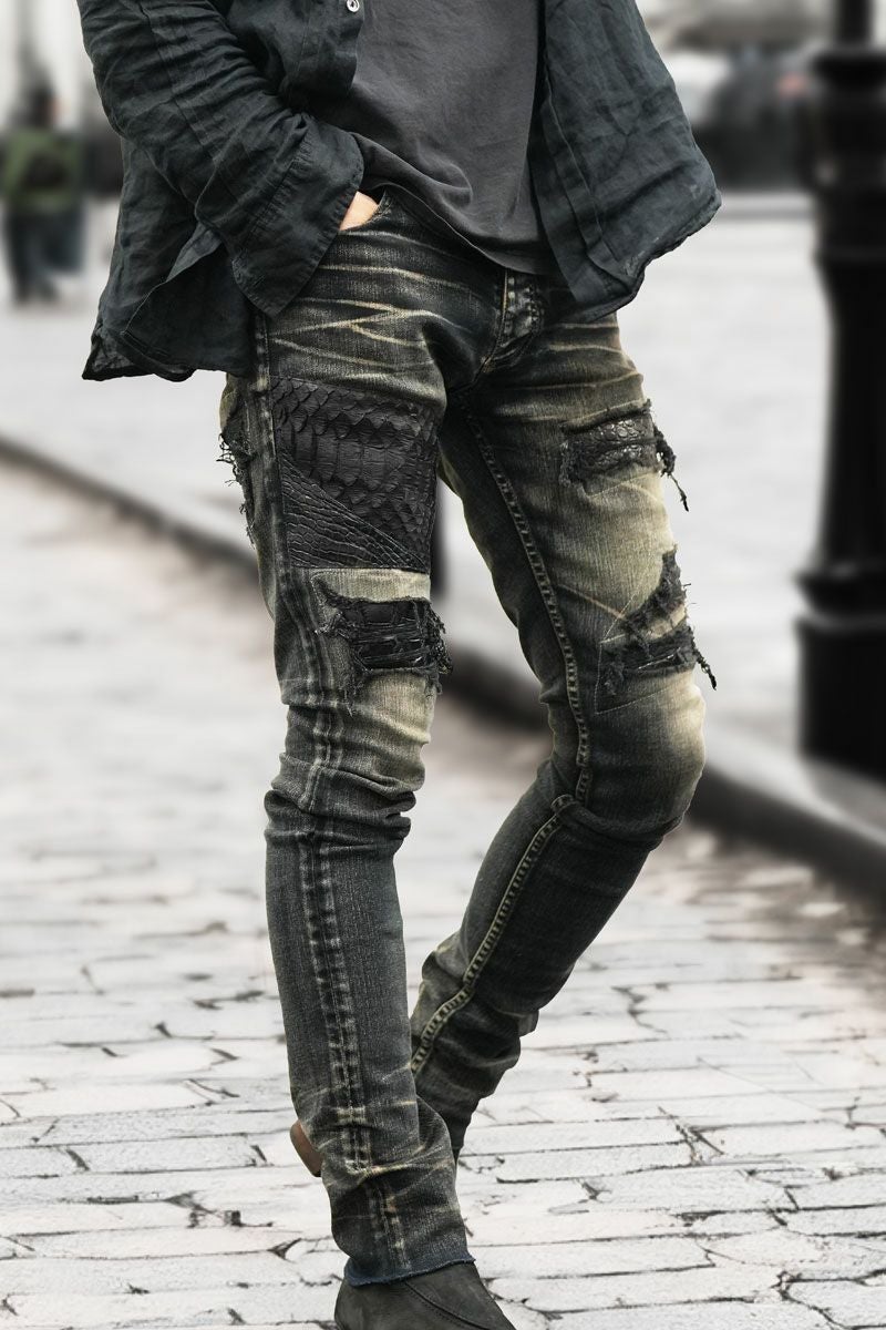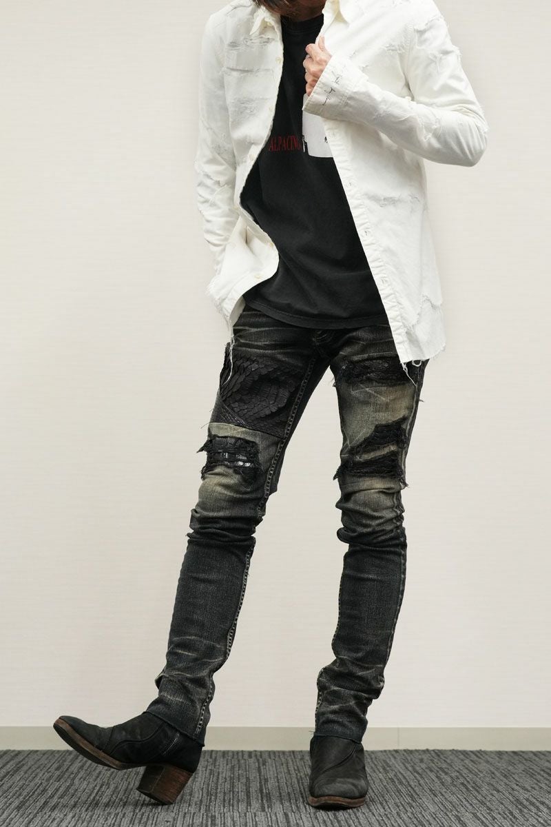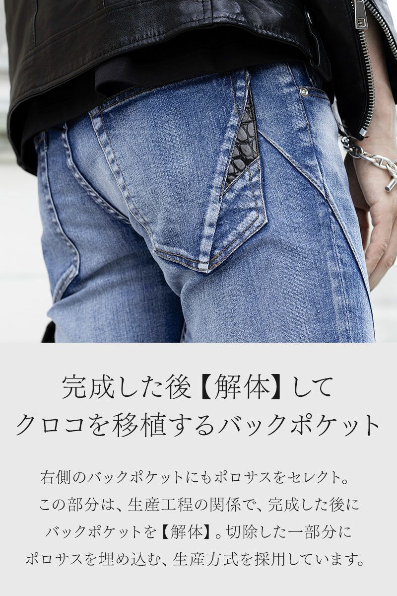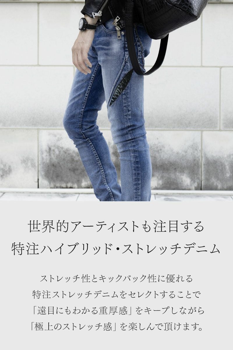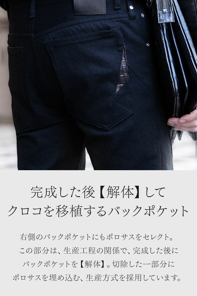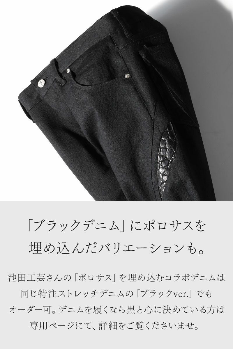 プロ御用達の岡山産ストレッチデニムパンツに、「革の王」や「革の宝石」と呼ばれるクロコダイルレザーを組み込んだ作品をご紹介します。創業80年のクロコダイル工房「池田工芸」様とのコラボレーションパンツもこちらでご紹介します。