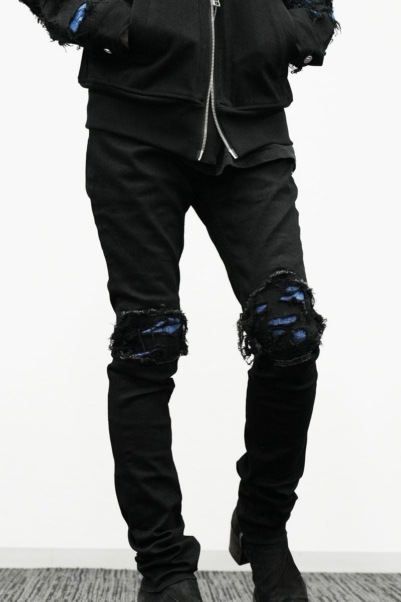 【FAGASSENT】MINI 岡山とのコラボレーションから誕生したアパレルライン デストロイデニム スキニーパンツ「 DEVIL / デビル 」BLUE DRIVE RACER(レーサー)