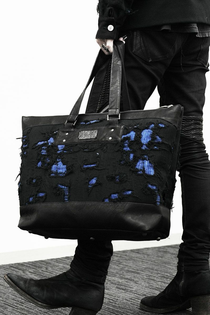 【FAGASSENT】MINI 岡山とのコラボレーションから誕生したアパレルライン ボストンバッグ ブルー刺繍デニム×ヴィンテージレザー採用モデル「 DEVIL / デビル 」BLUE DRIVE BOSTON-BAG(ボストンバッグ)