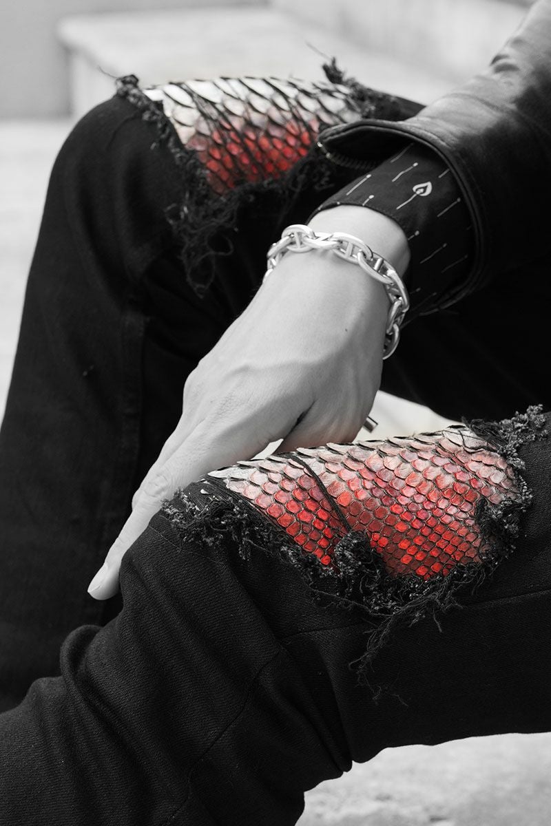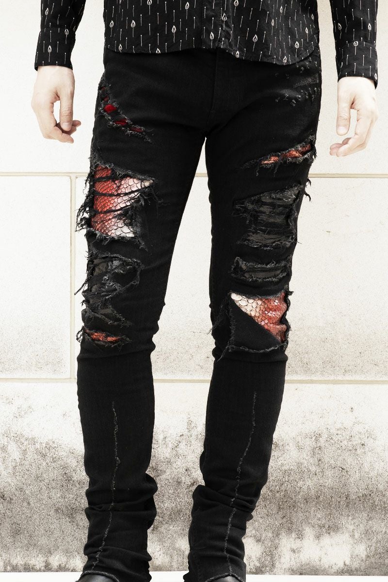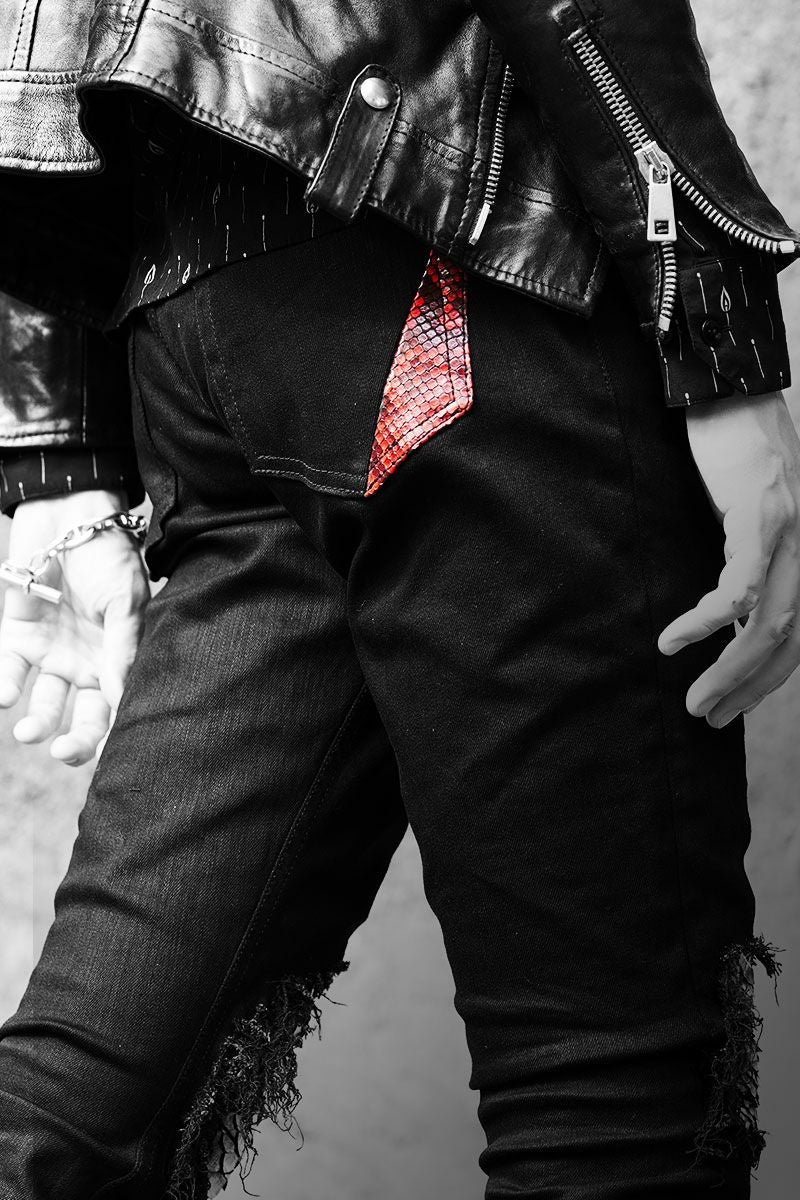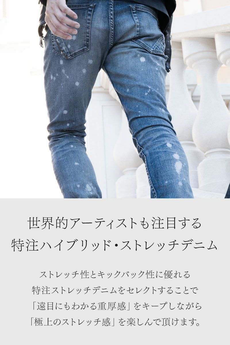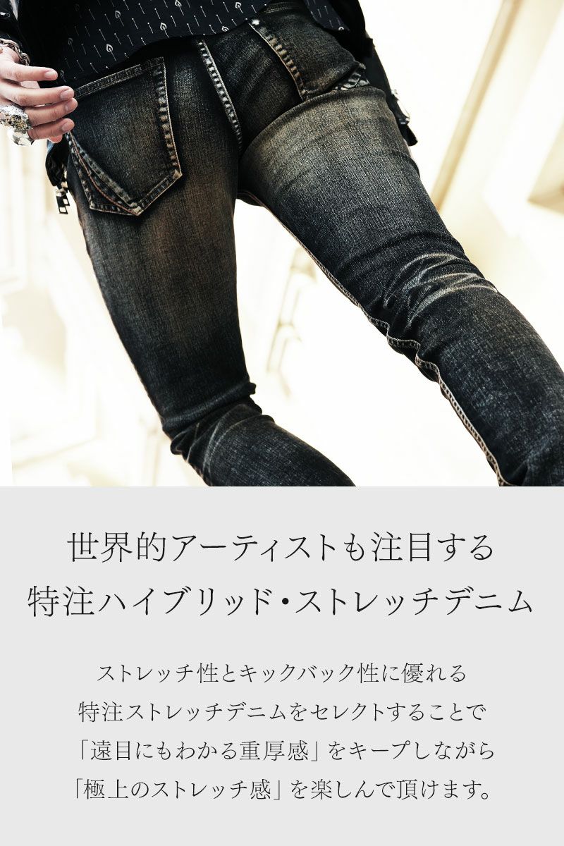ロックアーティストがステージ衣装やMV撮影に提供した作品や、提供した作品と同じ「岡山産・特注ストレッチデニム」でお作りするデニムパンツをご紹介します。一部、デニムではない「ステージレザー製作品」などもここでご紹介しています。