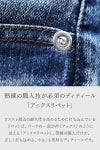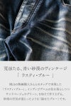 【FAGASSENT】青い砂漠のヴィンテージ 『 RUSTY VEIL BLUE / ラスティヴェール・ブルー 』 夜が始まる砂漠の青を、海外の一流バイヤーも注目する“柔らかい”特注ハイブリッド・ストレッチデニムの上に描く 日本・岡山の自社ファクトリー製 英国London×岡山産アルチザンデニムパンツ