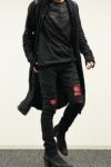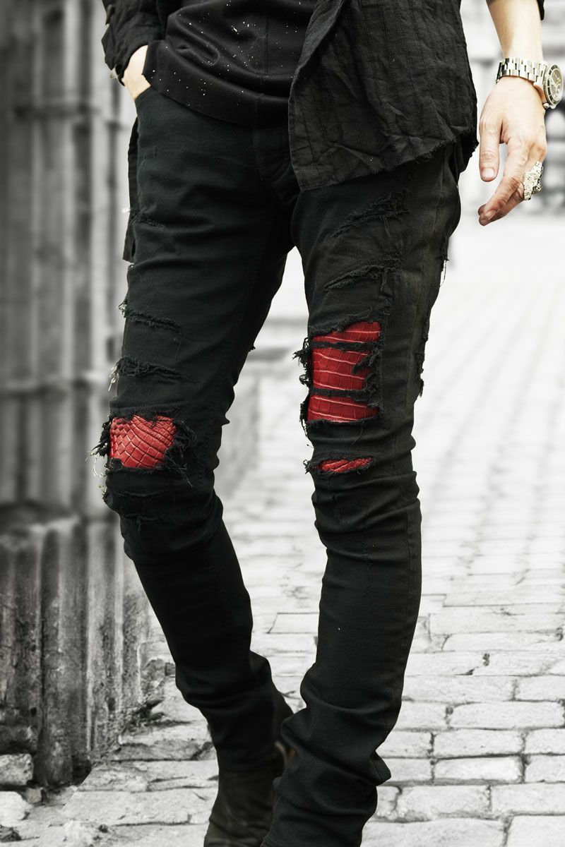 【FAGASSENT】最高級ライン・プライベートコレクション「RED DRAGON(レッドドラゴン)」レッド・クロコダイルレザー&レッドダイヤモンドパイソンレザー スキニーデニムLondon×岡山産アルチザン・デストロイデニムパンツ